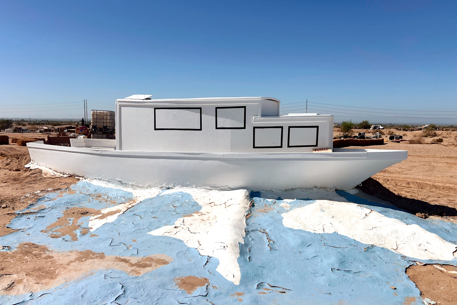 Unpainted Noah's Ark at Salvation Mountain.